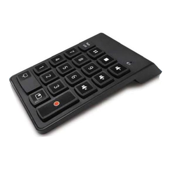 O: To bezprzewodowa klawiatura numeryczna USB do sterowania kluczowymi funkcjami mediastacji AREC, w tym nagrywaniem, głośnością i scenami (themes).