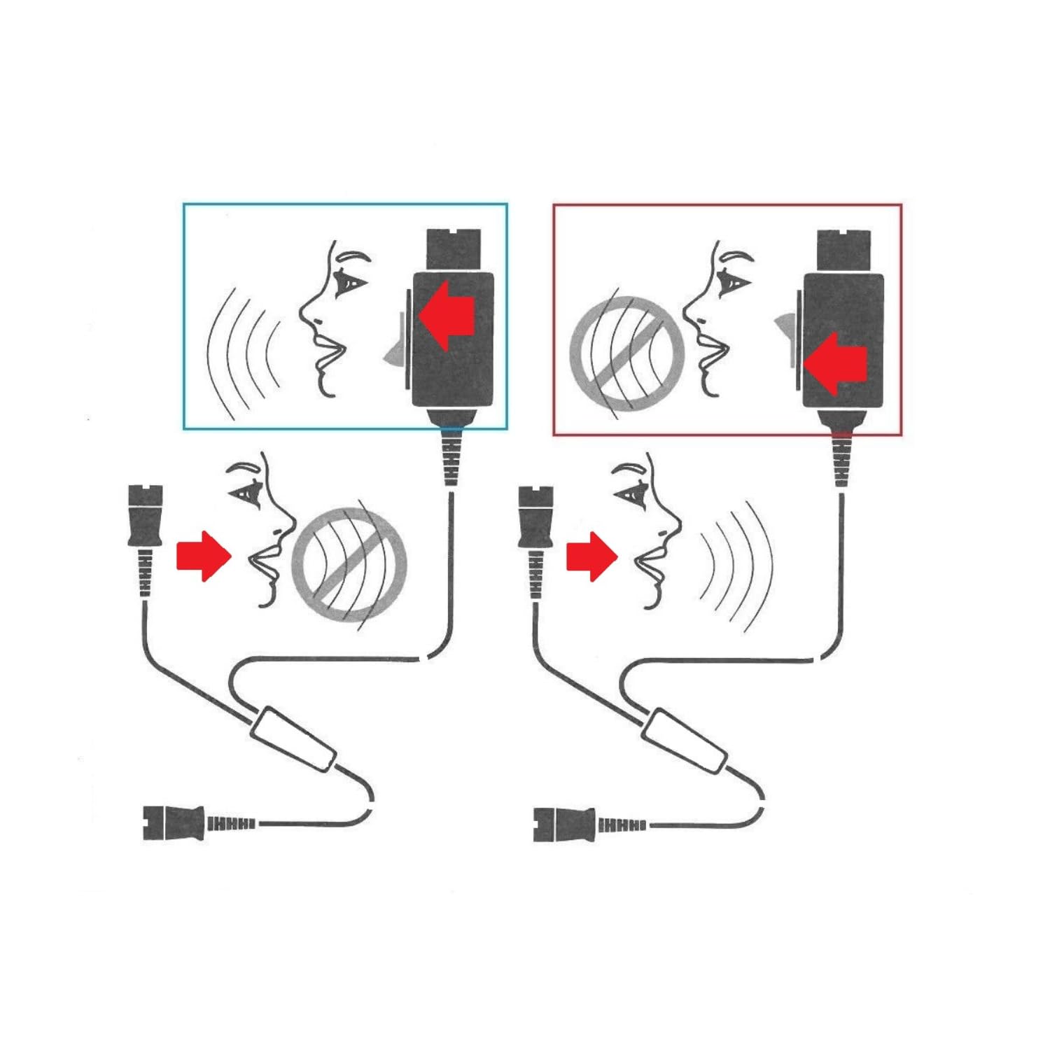 W obu słuchawkach słychać rozmowę, natomiast aktywny jest tylko jeden mikrofon. Czerwonym przełącznikiem trener decyduje, który mikrofon jest wyciszony.